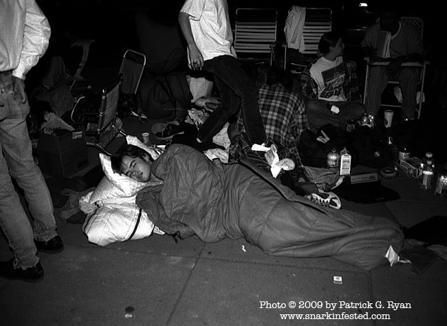 [Eager fans sleeping in line outside the Uptown for the premiere of the first Star Wars movie in 15 years – The Phantom Menace in 1999.]