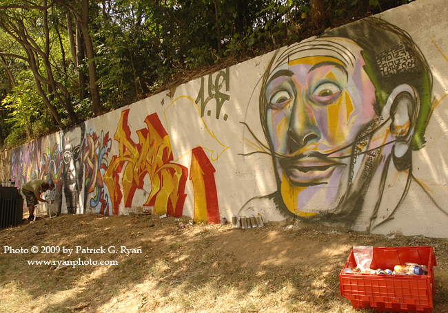 08/15/09 Over 100 muralists painting a wall larger than a football field in the Edgewood neighborhood in Northeast DC.
