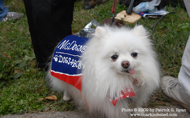 11/02/09 Partisan pooch at a rally for GOP candidate for Governor of Virginia, Bob McDonnell, in Old Town Alexandria Va.
