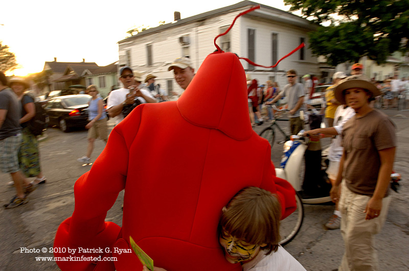 [Crawdaddyman gets a surprise hug outside Jazz Fest]