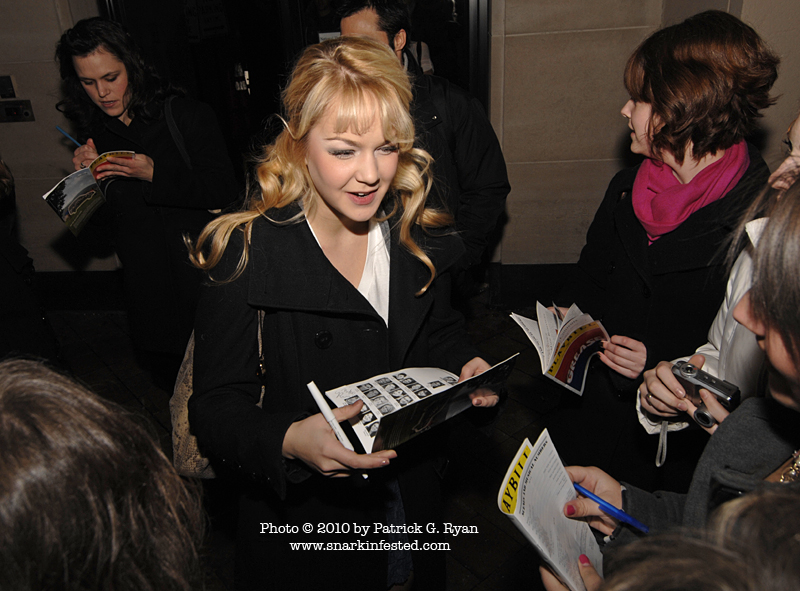 Lauren Ashley Zakrin, who plays Sandy D in the show, signs autographs for fans outside the stage door. That’s Laura D’Andre, who plays Rizzo, signing autographs in the background. After the play there was a cast party at the Hard Rock Café a couple blocks away.
