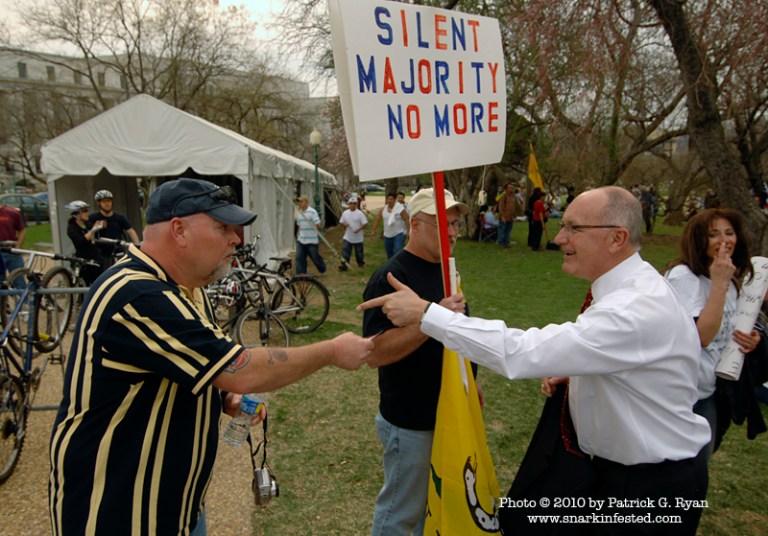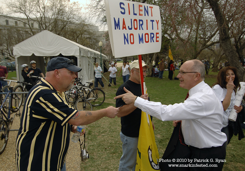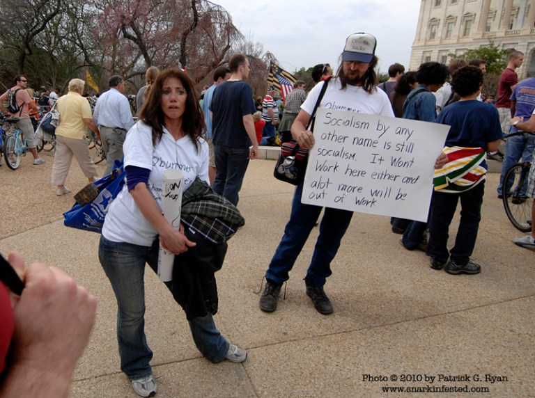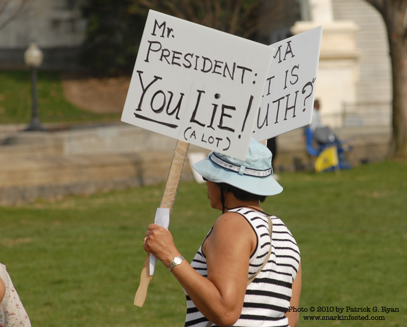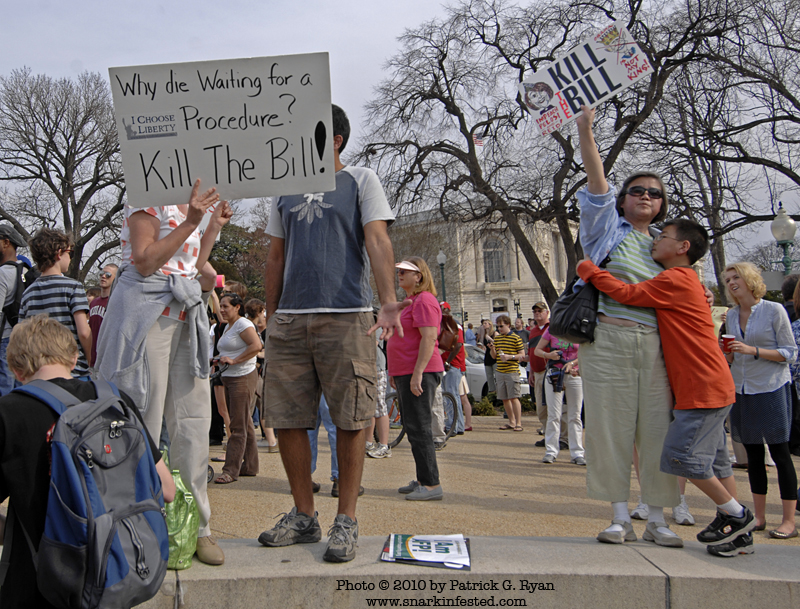 03/11/10 The climatic House vote on health care reform took place Sunday. The protesters who gathered on the Capitol lawn to rally against the bill were the same folks who’ve vented against health care reform at Town Hall meetings and Tea Party rallies for over a year now. These photos were taken at around 4pm when it became clear that Rep. Bart Stupak (D MI) and his pro-life holdouts would vote for the bill – thereby assuring its passage – in exchange for an Executive Order by the President banning federal funding for abortions. This news of this deal agitated the crowd greatly.