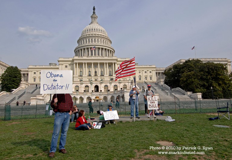 [The guy behind the “Obama the Dictator” sign declined to give his name for a caption.]