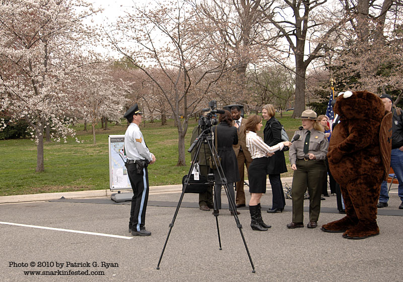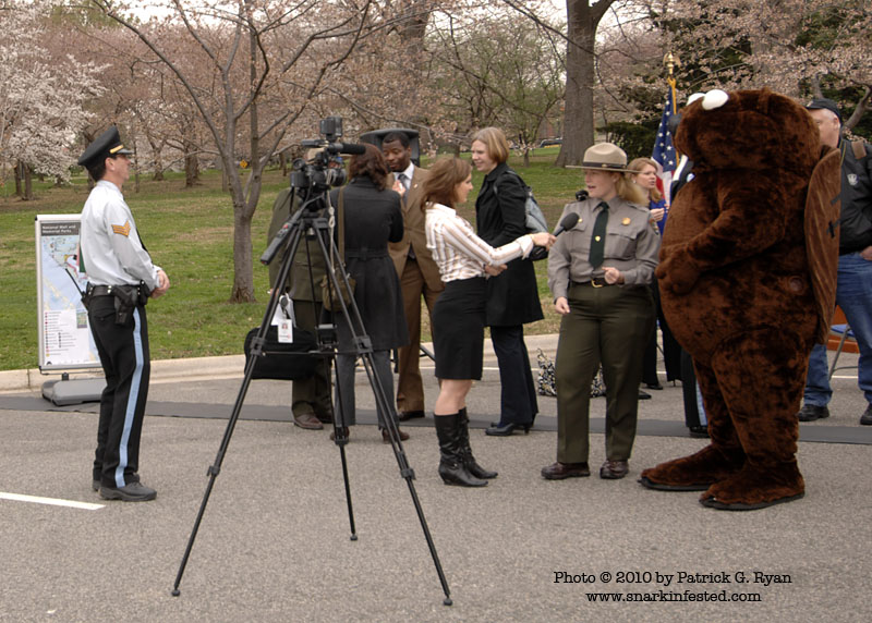 03/25/10 Paddles The Beaver holds court at a National Park Service news conference to announce details of new visitor services for the 2010 National Cherry Blossom Festival.