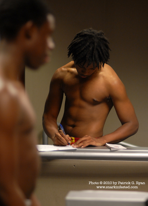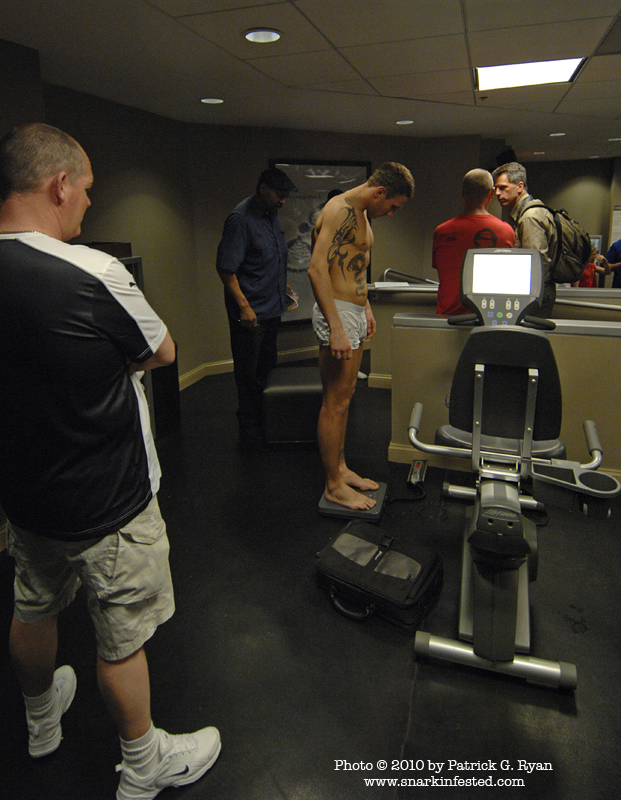 04/17/2010 Weighing In 04/16/10 Boxers weigh-in for tomorrow night’s 3rd annual Belfast Beltway Boxing matches. [A boxer signs his fight card while another stands on the scales.] Share this: Click to share on Facebook (Opens in new window) Facebook Click to share on X (Opens in new window) X Like Loading... Related