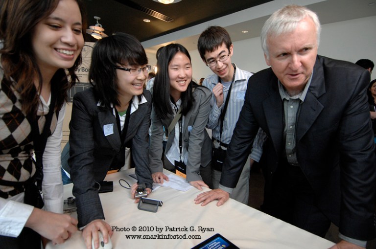 04/26/2010 James Cameron: Judgement Day 04/26/10 Christina Fries, Tianlu Zhang, Khristina Chang and Cameron Solomon of Team Fortran & C from UCLA demonstrate their game to director James Cameron at Microsoft’s Imagine Cup US finals competition at the Newseum in Washington, DC on Monday. Share this: Click to share on Facebook (Opens in new window) Facebook Click to share on X (Opens in new window) X Like Loading... Related