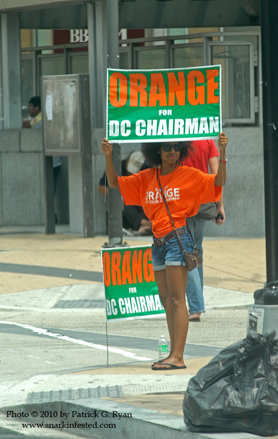07/28/2010 WashingtonScape: Stumping for Orange [07/27/10 Outside the Columbia Heights Metro station.] Share this: Click to share on Facebook (Opens in new window) Facebook Click to share on X (Opens in new window) X Like Loading... Related