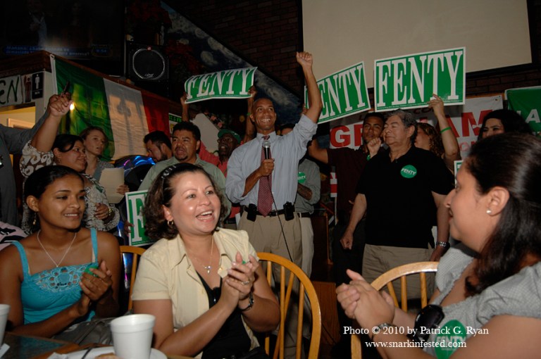 09/02/10 DC Mayor Adrian Fenty makes a campaign stop at at Haydee’s Restaurant in Mt. Pleasant Thursday morning where he received the endorsement of the Washington Hispanic newspaper.