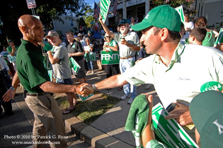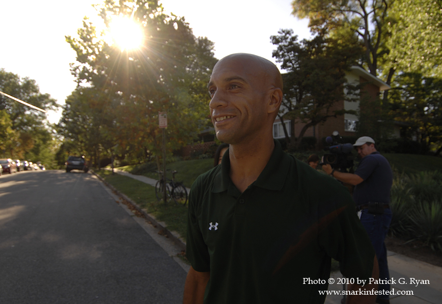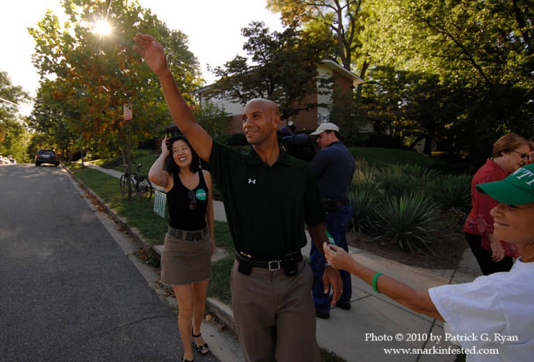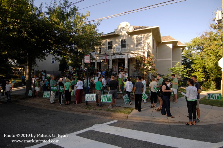 09/04/10 With just ten days remaining until the DC Democratic Primary, Mayor Adrian Fenty made an early morning campaign stop at the Broad Branch Market in Ward 4. After a short speech, he led the crowd to the nearby Chevy Chase Community Center polling place. Early voting began last week and the Fenty organization hopes to use it to score a come from behind victory when the votes are counted on Primary Day.
