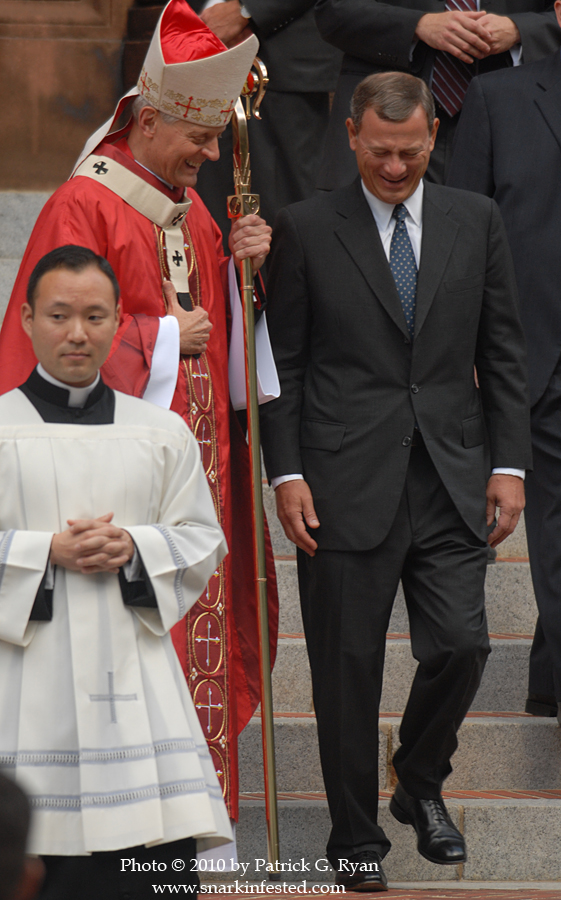 10/03/10 Washington’s Archbishop Donald Wuerl and Chief Justice John Roberts walk down the steps of St. Matthew’s Cathedral at the conclusion of the Red Mass. The Mass, which invokes The Holy Spirit, is traditionally said on the Sunday before the first Monday in October – the start of the US Supreme Court’s docket.