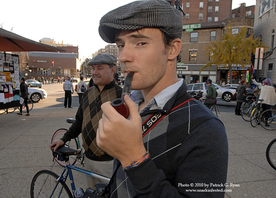 11/14/10 Betweed you and me, it was time once again for DC’s dapper set to don tweed, hop aboard their bicycles and roam the streets of Washington. The Tweed Ride was instituted by Dandies & Quaintrelles (est. 2009), “a Washington, DC based social group, organizes and hosts vintage-inspired, stylish events in partnership with and in support of noble causes. D&Q is founded on the ideals of refined style and purposeful living.”