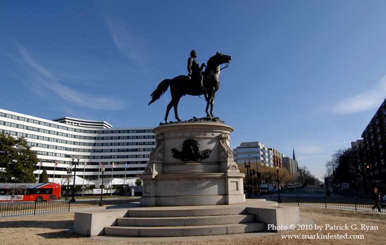 12/29/10 General George Thomas famous in the Civil War as the “Rock of Chickamauga” sits forever astride his bay horse “Billy” (named after his friend William Tecumseh Sherman) atop a pedestal on Thomas Circle in DC