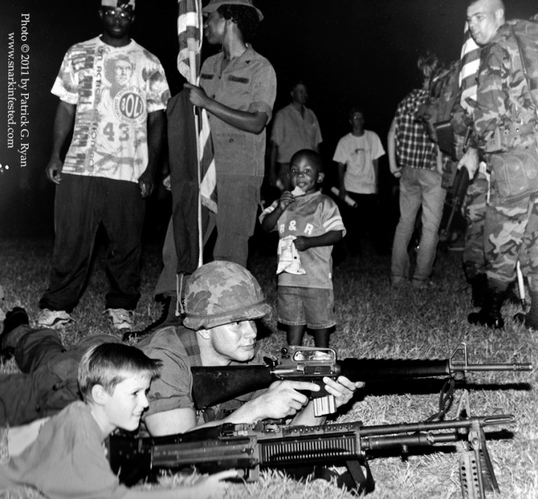 [Notes: This image was taken on 08/11/99 following a Twilight Tattoo by the U.S. Army’s Old Guard on the Ellipse behind the White House. Units were dressed in uniforms from different historical eras: Revolutionary War, Civil War, etc. The soldier with M16 is representing the Vietnam-era army grunt.]