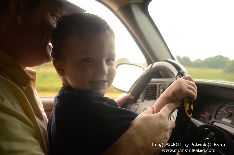 [Eamonn and his Uncle Tim driving.]