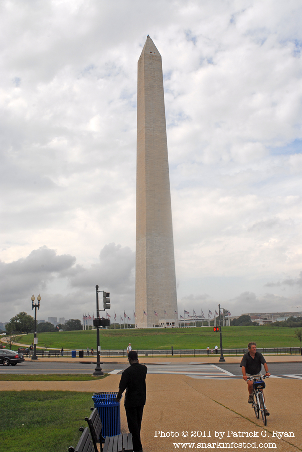 09/27/11 Engineers rappel down the side of the Washington Monument on Tuesday to check for cracks and other damage from the East Coast earthquake last month. The Monument has been closed to tourists since the quake.