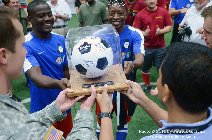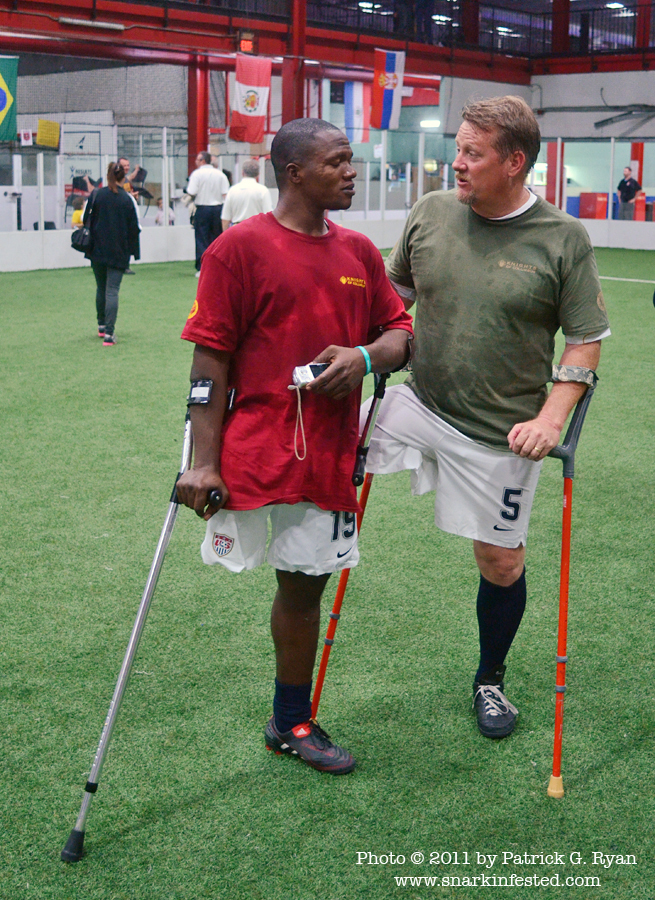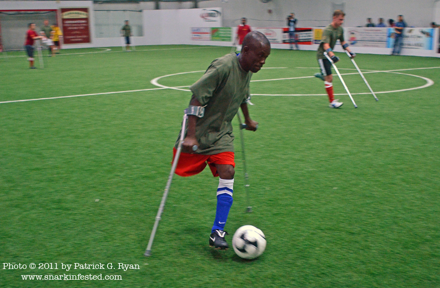 10/19/11 Members of Team Zayren – the Haitian amputee soccer team – conduct a soccer clinic for wounded American service members (from Walter Reed National Military Medical Center in Bethesda) Wednesday afternoon at the Rockville Sportsplex.