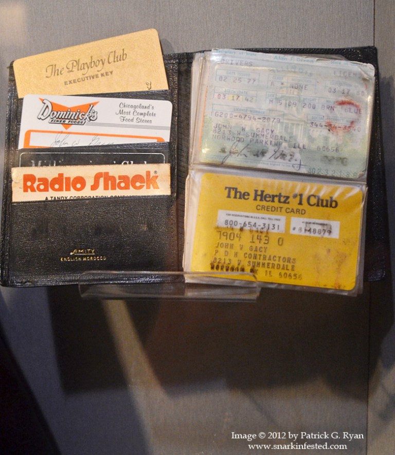 [The wallet of serial killer John Wayne Gacy. The Museum also has his clown costumes on display.]